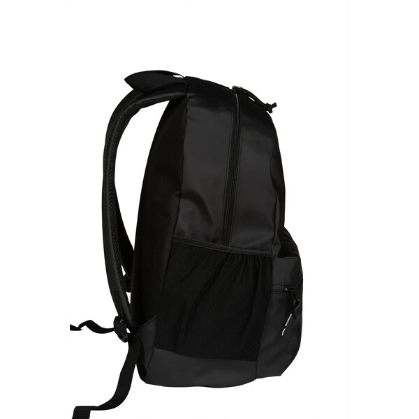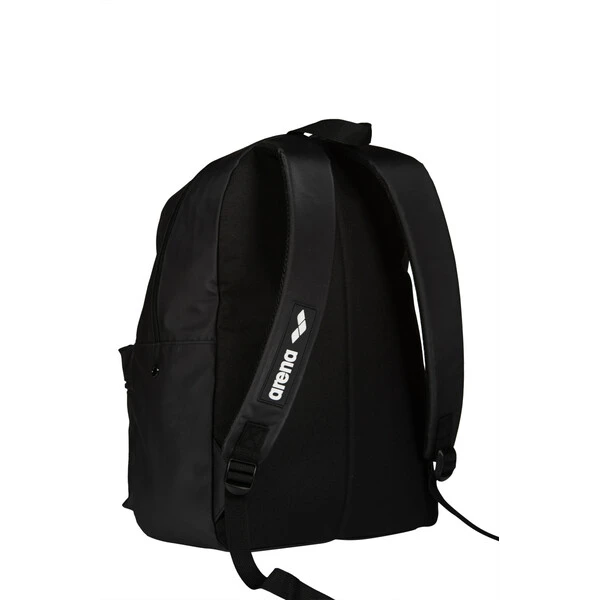 The stylish arena Backpack Team 30L All Black is ideal for transport your training gear or for school and leisure time. The large main compartment is breathable for moisture control. With separate swimbag for wet garments and inner laptop sleeve. The padded back panel and shoulder straps guarantee outstanding comfort. Dimensions: 46cm x 31cm x 16cm, 30L