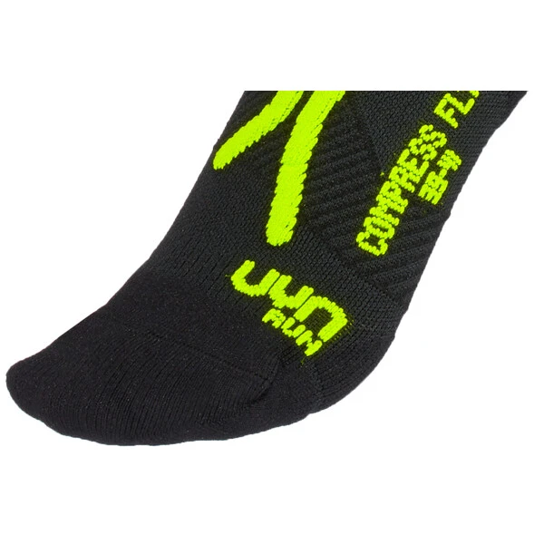 Intensive running sessions ahead? Then Compression Fly socks from UYN are your perfect companions. Their compression improves the oxygen supply to stressed muscles and thus also increases efficiency. Thanks to their structure, the socks fit perfectly, with no pressure points to obstruct the dynamics. The material Natex, a 100% plant-based nylon fibre, guarantees optimal climate management.